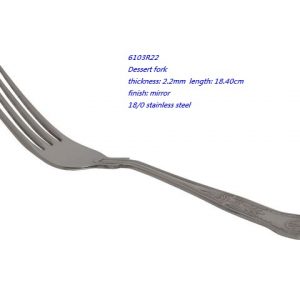 - 6103R22 Dessert fork thickness: 2.2mm length: 18.40cm finish: mirror 18/0 stainless steel