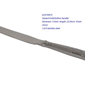 - 6107AR70 Dessert knife(hollow handle) thickness: 7.0mm length: 22.00cm finish: mirror 13/0 stainless steel