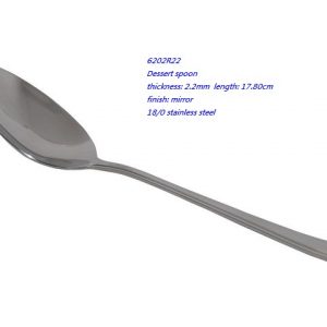 - 6202R22 Dessert spoon thickness: 2.2mm length: 17.80cm finish: mirror 18/0 stainless steel
