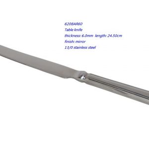 - 6208AR60 Table knife thickness: 6.0mm length: 24.50cm finish: mirror 13/0 stainless steel
