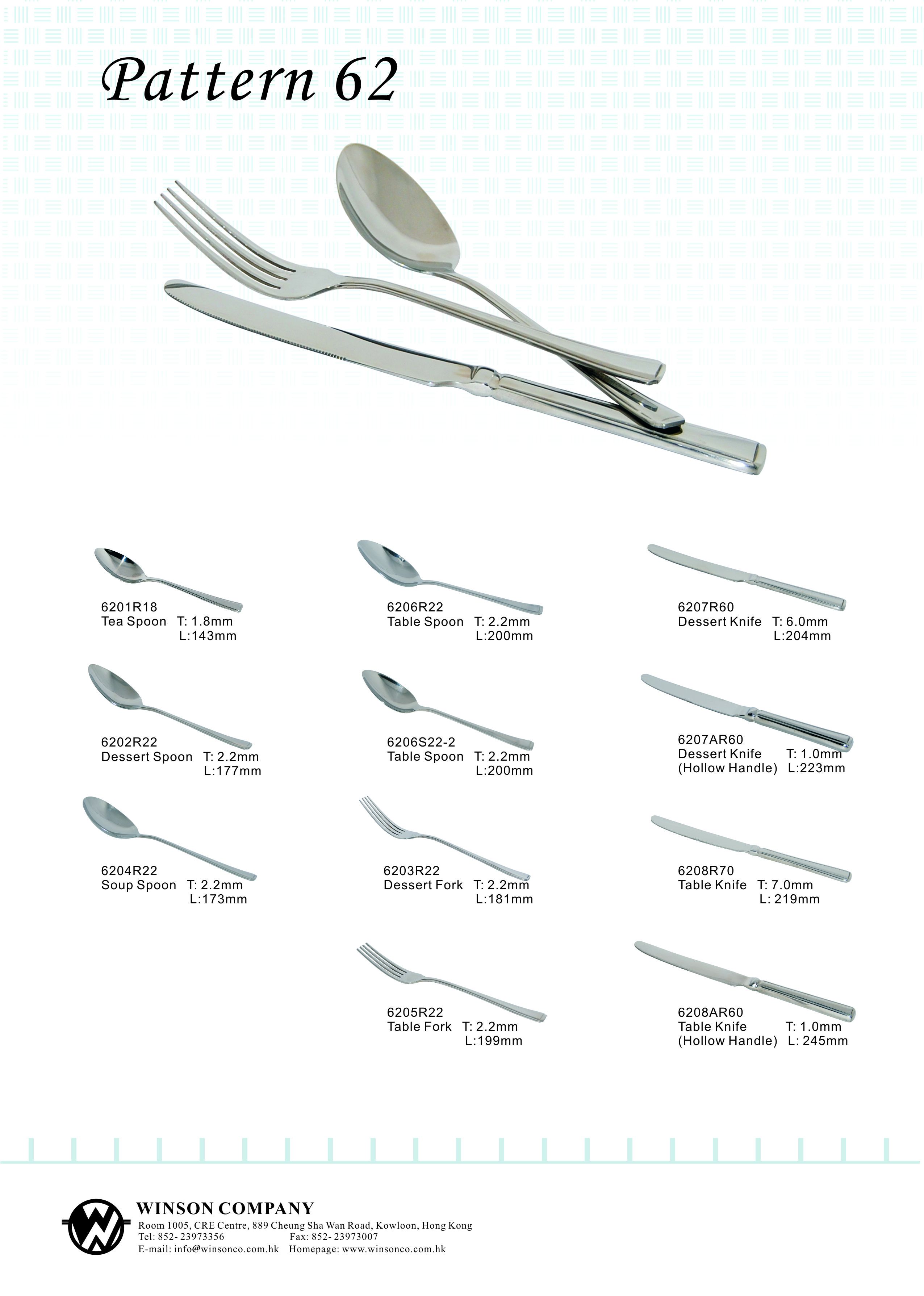 - 6207AR60 Dessert knife(hollow handle) thickness: 6.0mm length: 22.30cm finish: mirror 13/0 stainless steel