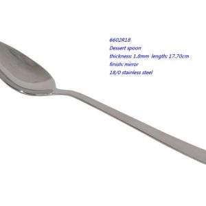 - 6602R18 Dessert spoon thickness: 1.8mm length: 17.70cm finish: mirror 18/0 stainless steel