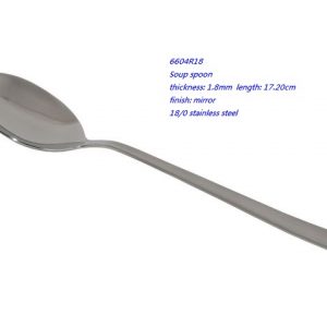 - 6604R18 Soup spoon thickness: 1.8mm length: 17.20cm finish: mirror 18/0 stainless steel