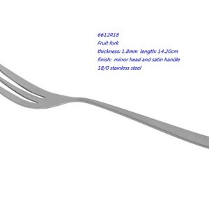 - 6612R18 Fruit fork thickness: 1.8mm length: 14.20cm finish: mirror head and satin handle 18/0 stainless steel