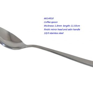 - 6614R18 Coffee spoon thickness: 1.8mm length: 11.50cm finish: mirror head and satin handle 18/0 stainless steel