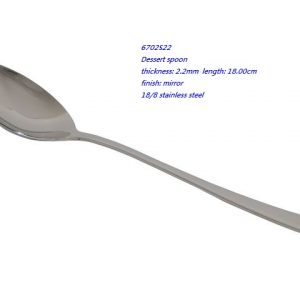 - 6702S22 Dessert spoon thickness: 2.2mm length: 18.00cm finish: mirror 18/8 stainless steel