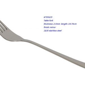 - 6705S25 Table fork thickness: 2.5mm length: 19.70cm finish: mirror 18/8 stainless steel