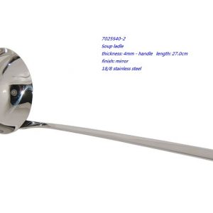 - 7025S40-2 Soup ladle thickness: 4mm – handle length: 27.0cm finish: mirror 18/8 stainless steel