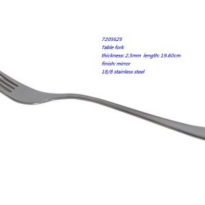 - 7205S25 Table fork thickness: 2.5mm length: 19.60cm finish: mirror 18/8 stainless steel