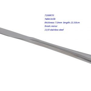 - 7208R70 Table knife thickness: 7.0mm length: 21.50cm finish: mirror 13/0 stainless steel