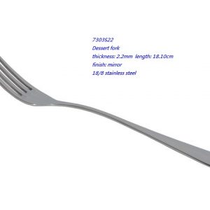 - 7303S22 Dessert fork thickness: 2.2mm length: 18.10cm finish: mirror 18/8 stainless steel