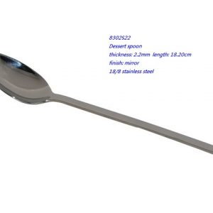 - 8302S22 Dessert spoon thickness: 2.2mm length: 18.20cm finish: mirror 18/8 stainless steel