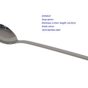 - 8304S22 Soup spoon thickness: 2.2mm length: 18.20cm finish: mirror 18/8 stainless steel