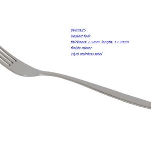- 8603S25 Dessert fork thickness: 2.5mm length: 17.30cm finish: mirror 18/8 stainless steel
