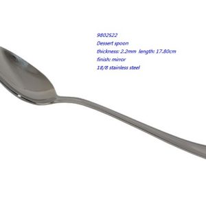 - 9802S22 Dessert spoon thickness: 2.2mm length: 17.80cm finish: mirror 18/8 stainless steel