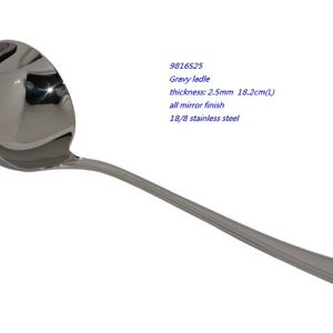 - 9816S25 Gravy ladle thickness: 2.5mm 18.2cm(L) all mirror finish 18/8 stainless steel