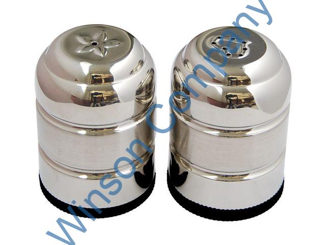 TB5832: Dia.68mm, 75mm(H) TB5833: Dia.42mm, 60mm(H) TB5833 Mini jumbo set 2pcs salt & pepper shakes Dia.42mm, 60mm(H) 18/8 stainless steel TB5832 Jumbo cruet set 2pcs salt & pepper shakes. Dia.68mm, 75mm(H) 18/8 stainless steel