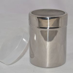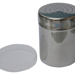 - TB6066 Shaker with mesh cover with a plastic lid dia. 7cm height 9.3cm 0.5mm thickness 0.35L 202 stainless steel