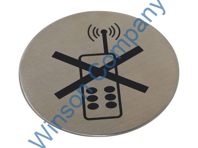 Sign sticker — SN5428 SN5428: “Moblie prohibited” sign sticker, dia 75mm SN5428 Mobile Prohibited 18/0Stainless steel sign plate Dia. 7.5 cm Thickness : 1mm