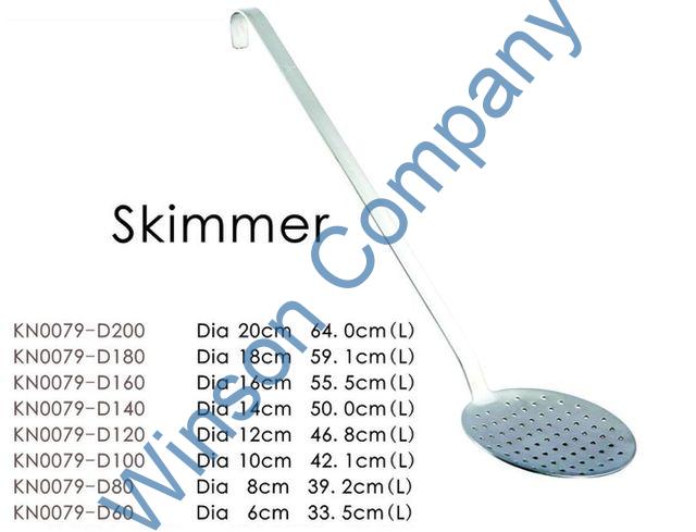 - KN0079-D180 Rice skimmer 18cm dia thickness: 4mm length: 59.1cm 18/8 stainless steel