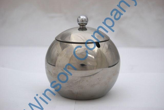 Sugar bowl with lid and spoon; 10cm(H) dia.9cm.