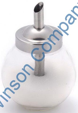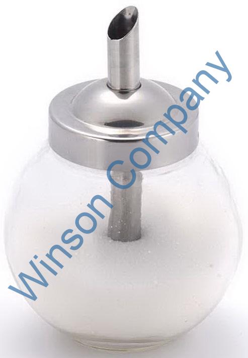 Sugar dispenser, round glass body with 18/0 stainless steel lid
